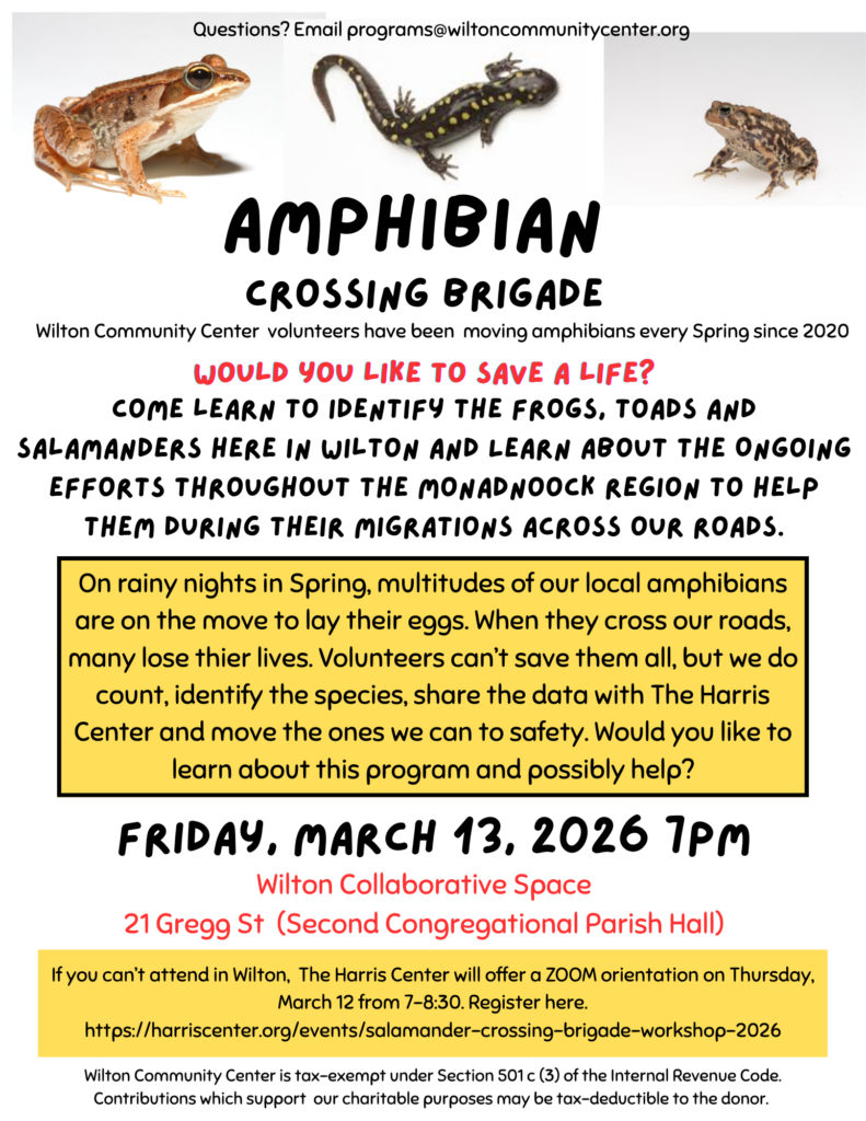 Contact program coordinator Stephanie with questions: programs@wiltoncommunitycenter.org