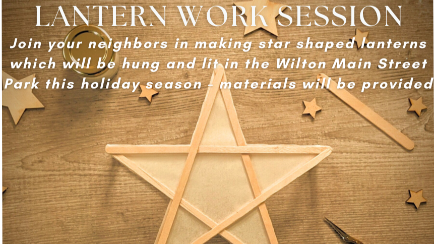 Join your neighbors in making star shaped lanterns which will be hung and lit in the Wilton Main Street Park this holiday season. Materials will be provided.